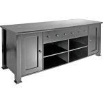 Integrated cable management system for hiding wires, interconnecting cable connections and slot ventilatiion. Features bronze tinted tempered safety glass window pane sliding doors.